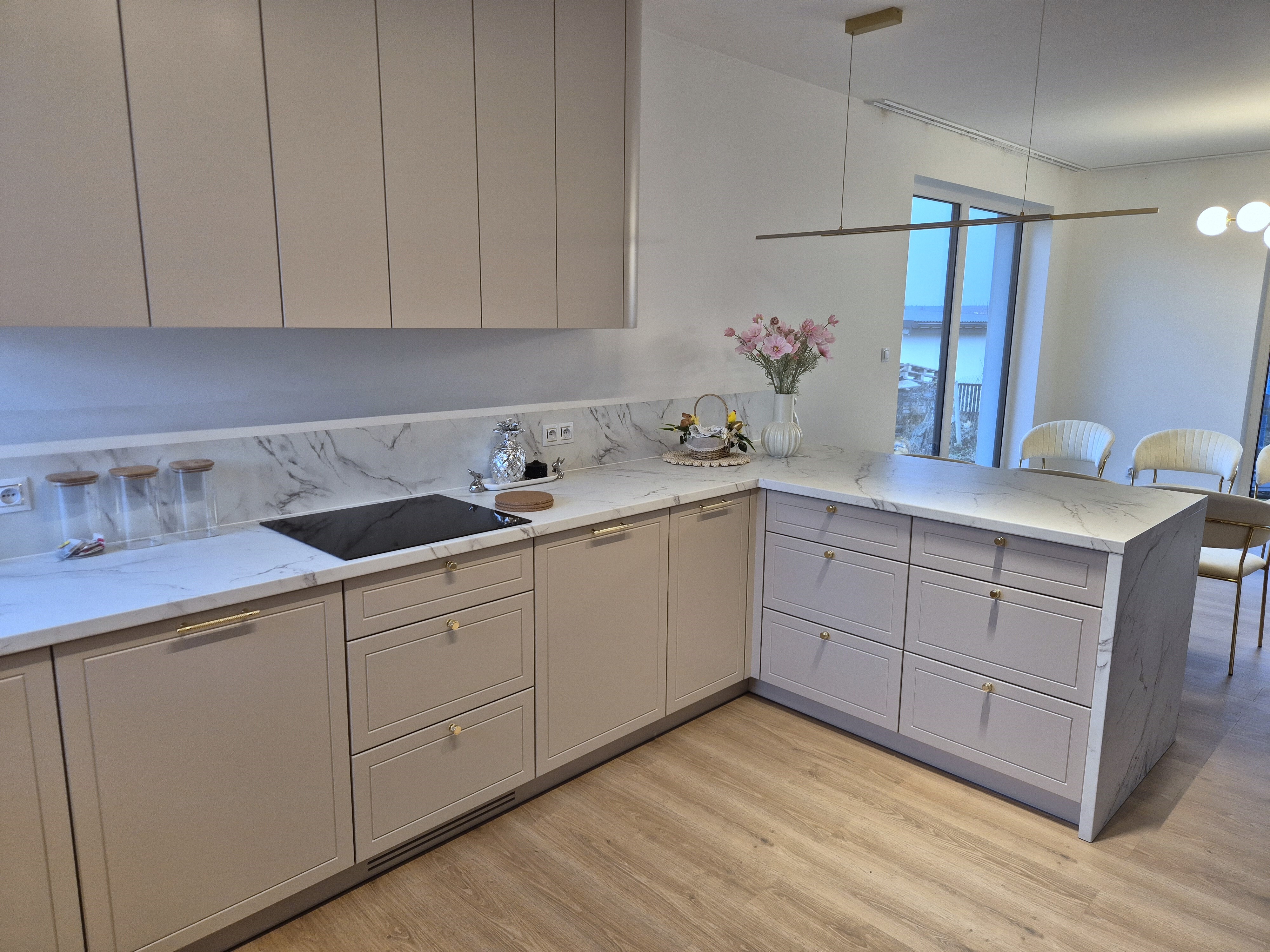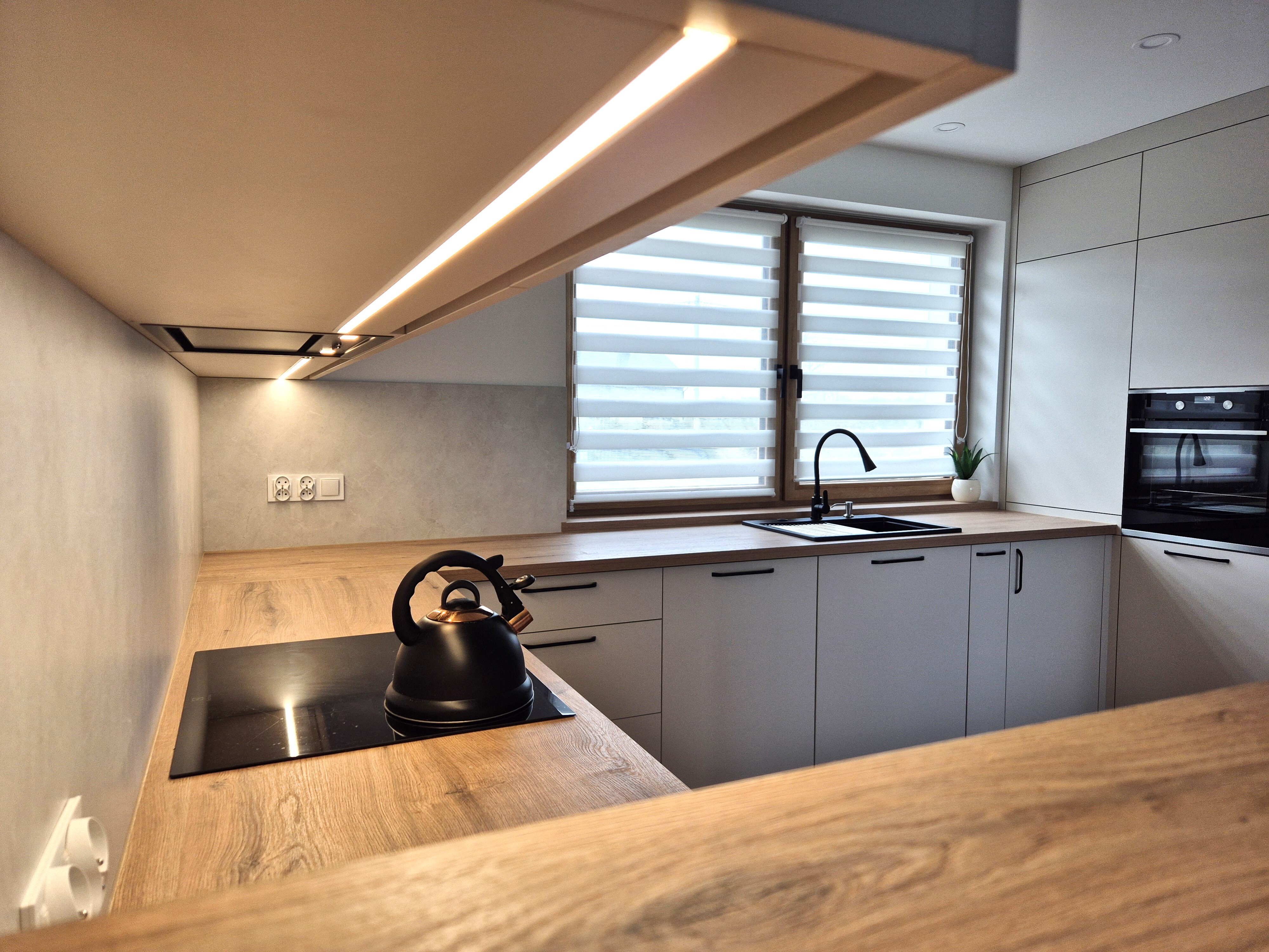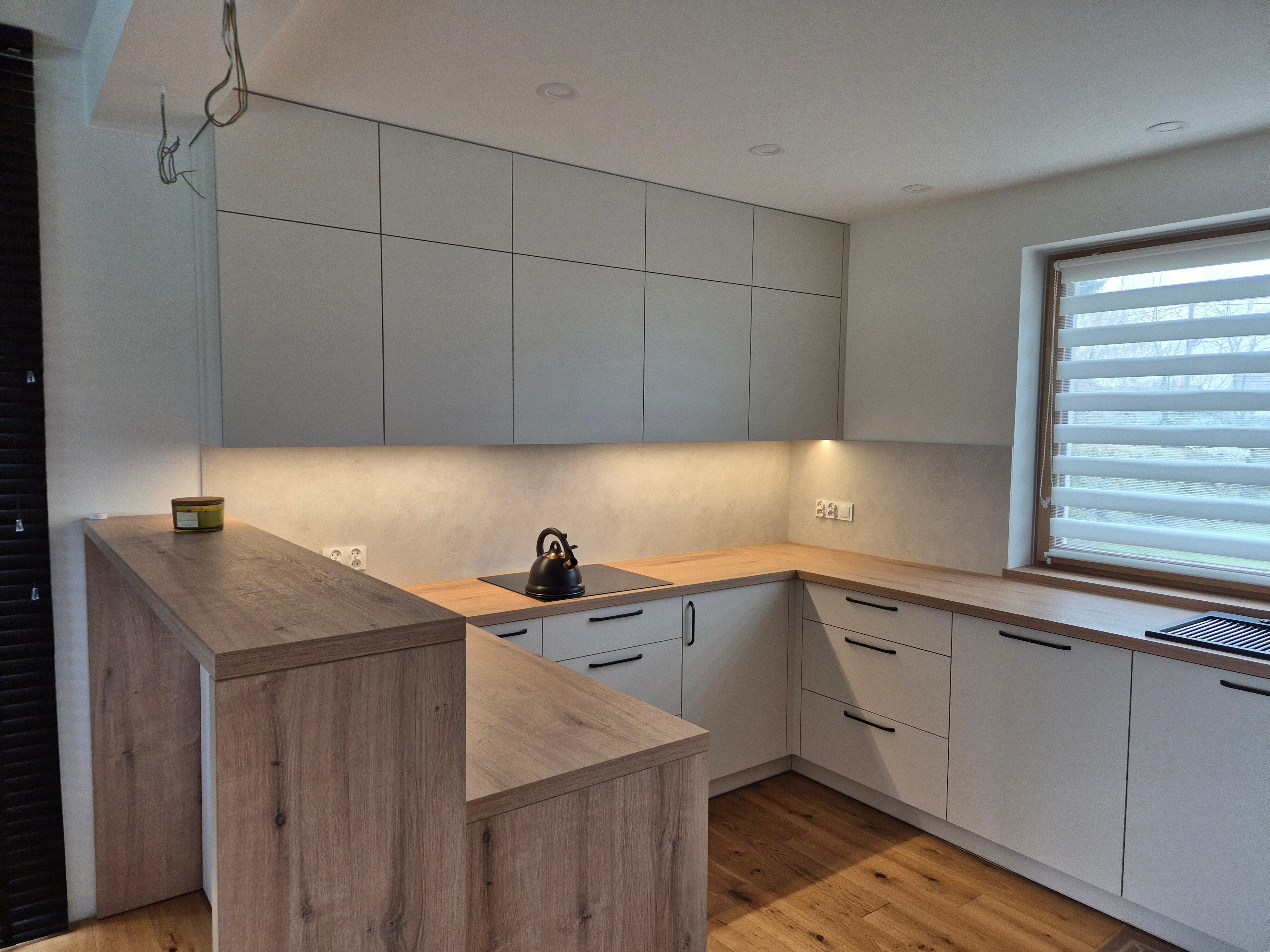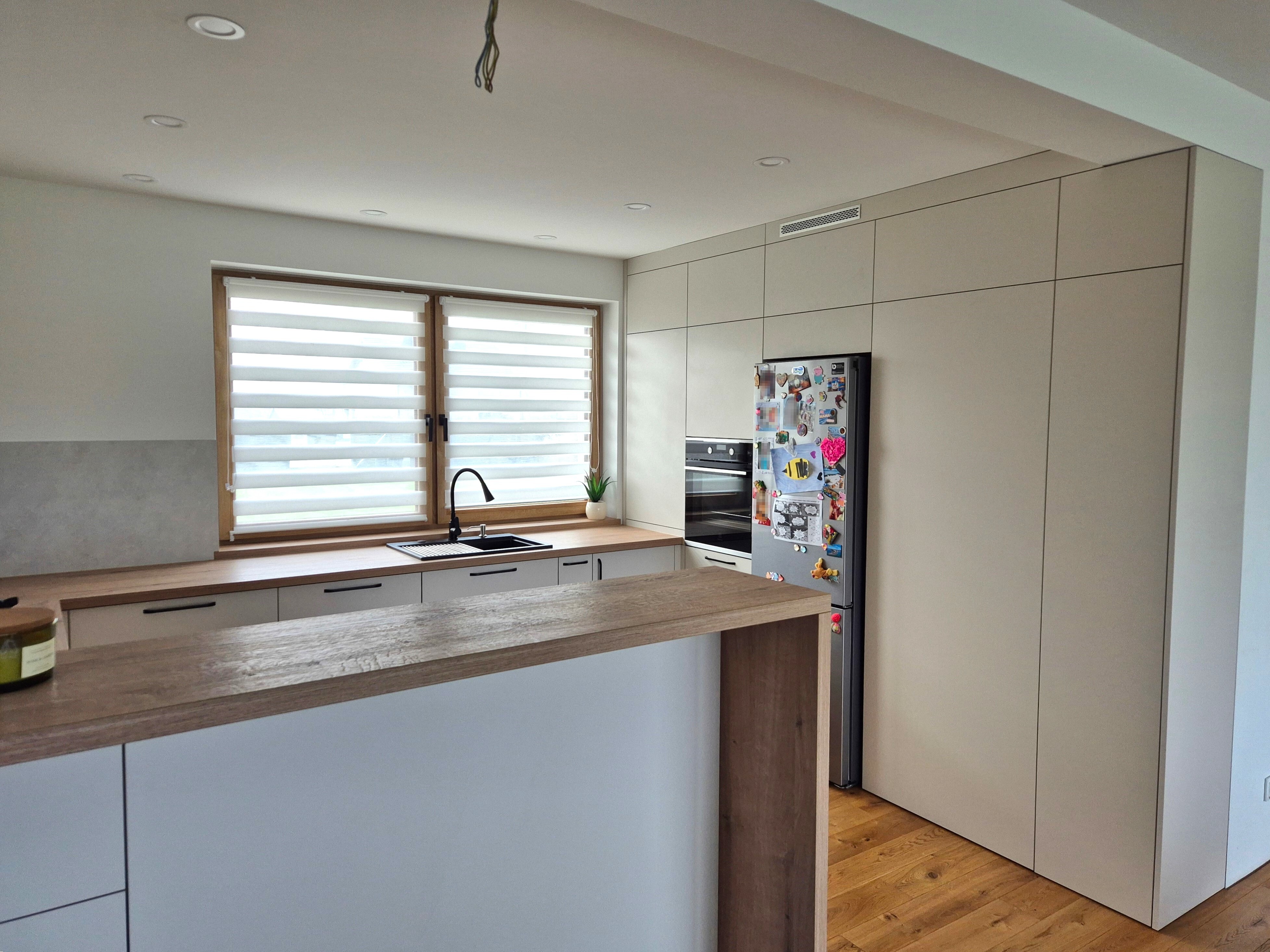 Meble kuchenne tworzymy do pomieszczeń o różnej wielkości i kształcie, które charakteryzują się przede wszystkim funkcjonalnością i dopasowaniem do potrzeb domowników. Dzięki temu, że wykonana jest na wymiar, możemy maksymalnie wykorzystać dostępną przestrzeń. Współpracujemy z dystrybutorami różnych producentów płyt meblowych oraz blatów ( m.in. Swiss Krono, Kronospan, Egger, Juan, Polglos, Aquafront) dzięki czemu mamy duży wybór dekorów.
